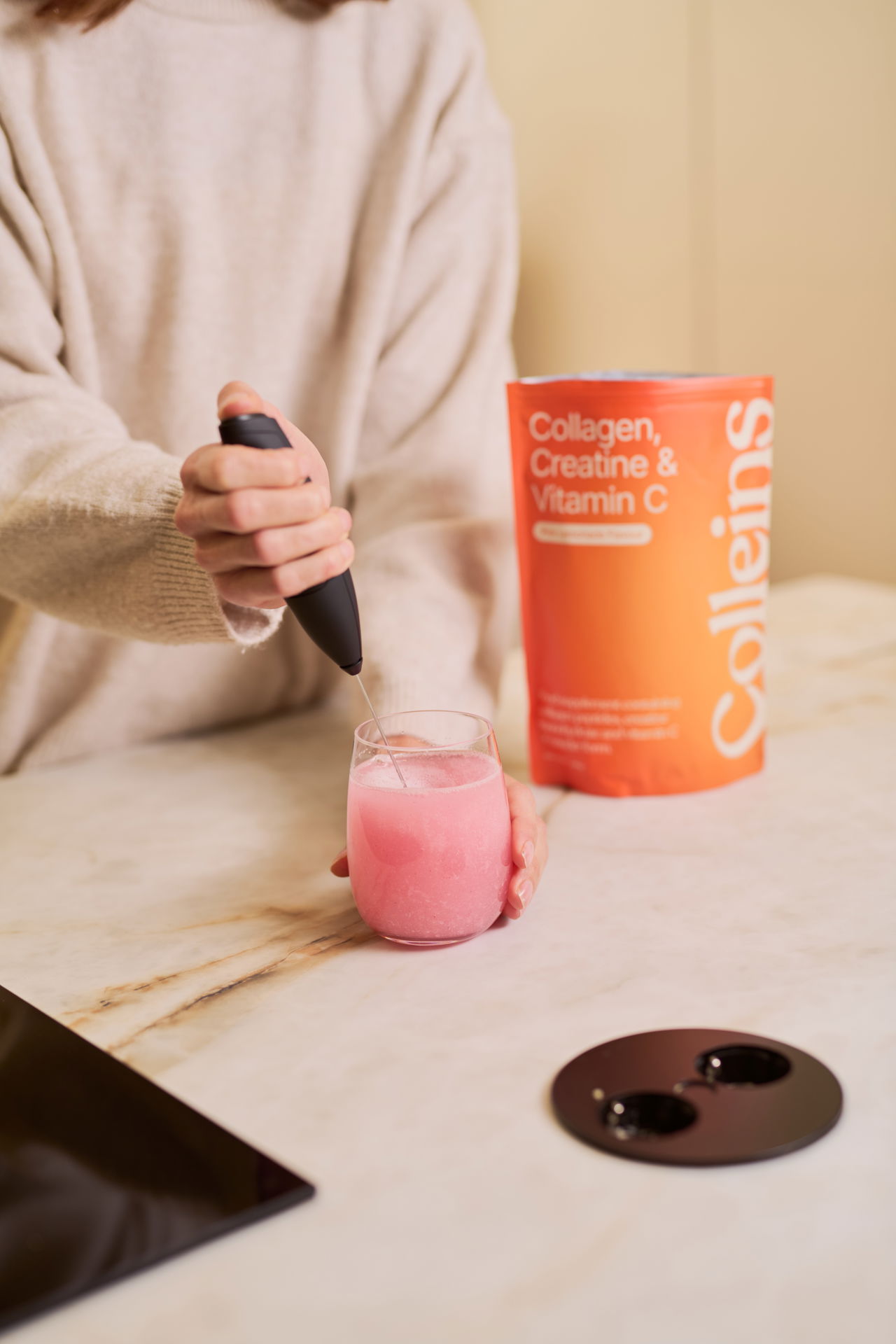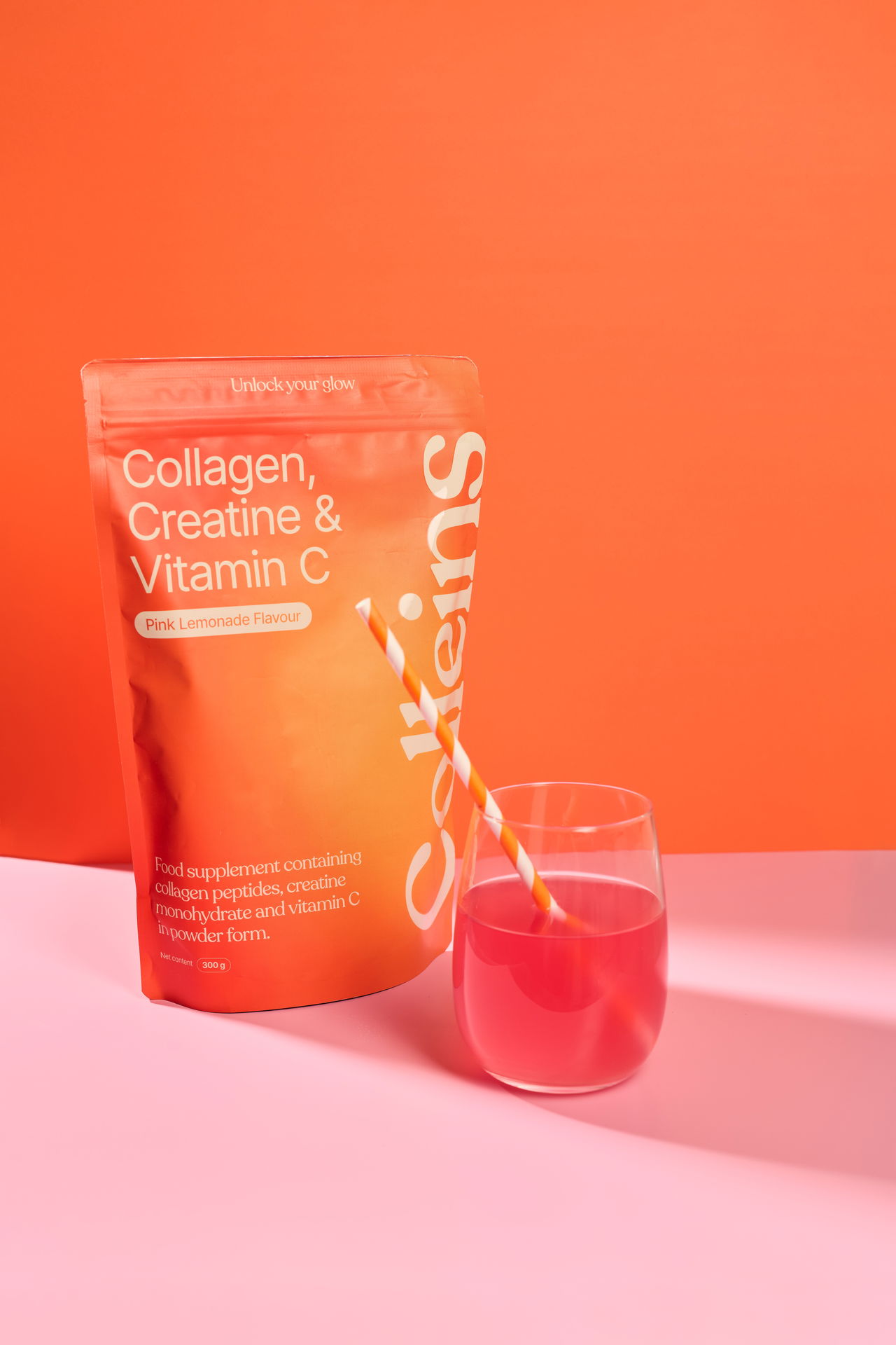 Colleins combineert collageen en creatine in één verfrissende pink lemonade. Voor vrouwen die niet willen kiezen tussen kracht en verzorging.